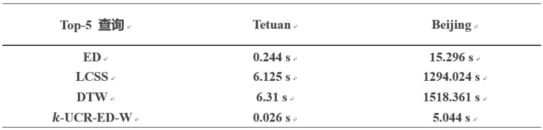 随着查询序列长度的增加,本文方法的优势愈加显著。当长度超过128时,原始欧几里得距离(ED)算法的计算时间显著增加。对于top-k 相似性查询。实验设置了相同的 k 值和查询序列长度(|q| = 64),以观察并比较本文的优化方法在不同算法中优化效果(表3)。