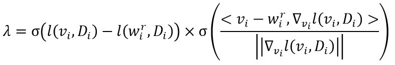为了实现该目标,客户端在训练自适应模型的过程中最小化两个指标:一是自适应模型在本地数据上的损失值,二是自适应模型参数向量和全局模型参数向量之间的差异值(其中在每一轮联邦学习中由服务器传来的全局参数初始化进而在客户端本地数据上进行更新)。经验发现指出,当全局模型能够在本地数据上取得较高性能表现(如较小)时,最小化自适应模型参数向量和全局模型参数向量之间的差异值有利于自适应模型的训练;然而,当较大时,最小化两个参数向量的差异值并不利于自适应模型。基于该发现,本文引入了一个动态参数λ来灵活地调整自适应模型的优化目标,计算公式如下: