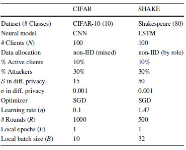 表2展示了本文所提出的动态检测方案在不同NR阈值下检测到负联邦学习状态所需要经历的联邦学习轮数。总的来说,本文所提出的检测方案能够对潜在的负联邦学习状态做出快速报告。在NR阈值较小(如CIFAR任务上NR<50以及SHAKE任务上NR<70)的情况下,检测方案会产生一些错误报告结果;但随着NR阈值增加,错误报告结果消失,与此同时报告潜在负联邦学习状态所需等待的轮数也增加。考虑到错误报告结果在本文所提出的检测方案中允许被撤销(因此对最终系统模型最终性能表现的影响可忽略不计,但会在客户端上引起一些不必要的双模型训练开销),本文推荐设置一个中等NR阈值,也就是在CIFAR任务上设置NR=50,在SHAKE任务上设置NR=70。SHAKE任务收敛速度相对更慢,因此需要设定比CIFAR任务稍微更大一些的阈值。