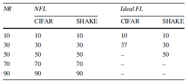 表2. 不同NR阈值下动态检测负联邦学习所需要的轮数 (横杆:未检出负联邦学习)