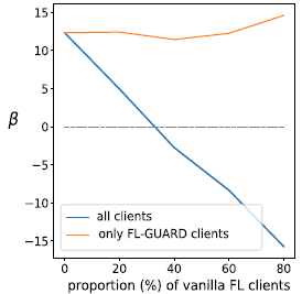 图5. FL-GUARD对于不愿意配合负联邦学习状态修复的客户端的鲁棒性结果