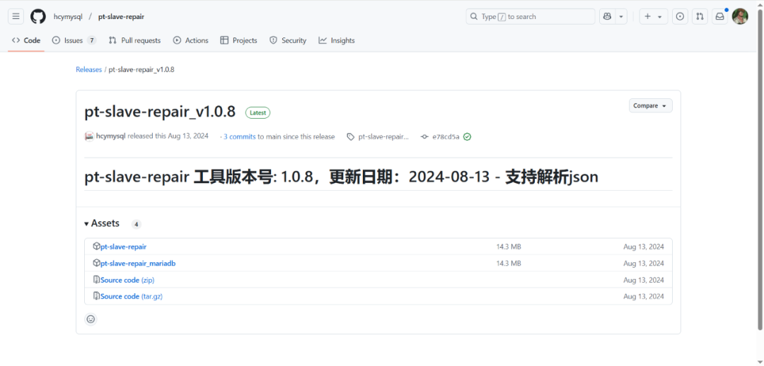 wget https://github.com/hcymysql/pt-slave-repair/releases/download/pt-slave-repair_v1.0.8/pt-slave-repair
