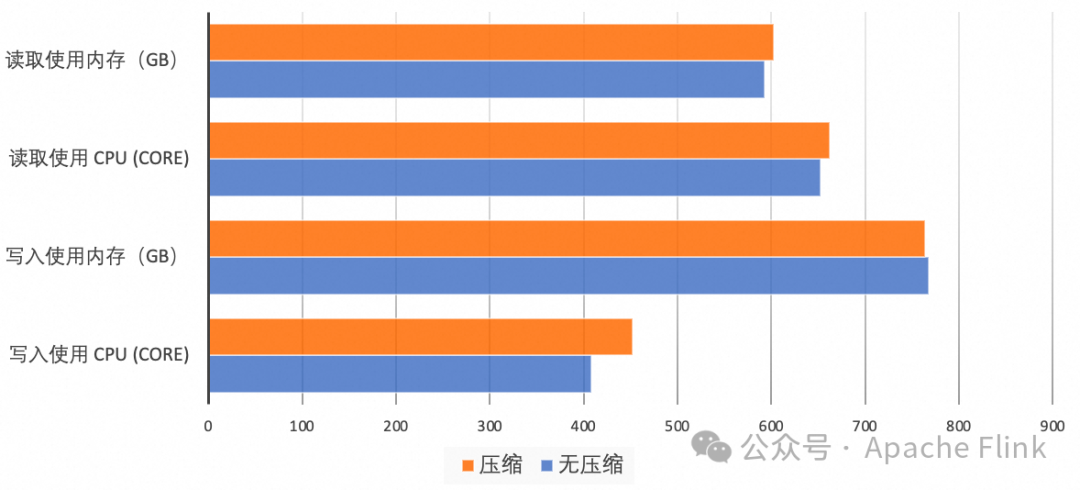 而开启压缩后的 Flink 读写 CPU 与内存并未产生明显变化。
