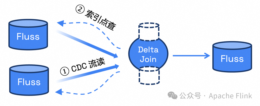 在 Flink 宽表构建场景中,通过 Delta Join 来优化双流 Join 是目前 Fluss 的一个主要使用场景,我们也将这部分功能贡献到了 0.6 版本中。Delta Join 可以简单理解成“双边驱动的维表 Join”,就是左边来了数据,就根据 Join Key 去点查右表;右边来了数据,就根据 Join Key 去点查左表。全程就像维表 Join 一样不需要state,但是实现了双流 Join 一样的语义,即任何一边有数据更新,都会触发对关联结果的更新。通过 Delta Join 解决大状态双流Join遇到的成本高、作业不稳定、Checkpoint超时、重启恢复慢等问题。