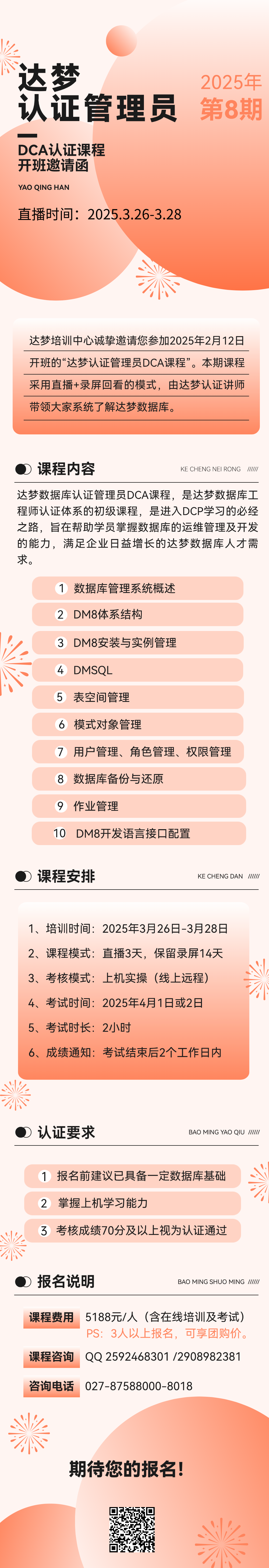 开班通知 | 2025年第8期达梦认证管理员DCA在线课程(2025年3月26日开班)