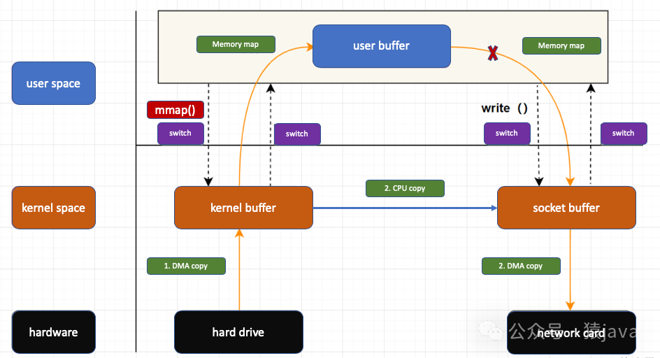 系统调用将文件或设备映射到用户空间,实现用户直接访问这些资源,减少拷贝。sendfile 系统调用:允许将文件数据直接从文件描述符传输到网络套接字,省去将数据拷贝到用户空间的过程。 散点聚集(Scatter/Gather I/O):通过单次系统调用实现多块数据的读写,减少多次拷贝。