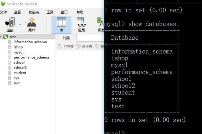 o连接成功后,在左侧的导航栏中可以看到数据库列表。展开数据库,就可以看到其中包含的表、视图、存储过程等对象。这和我们在MySQL的客户端直接输入show databases;的命令后,看到的结果是一样的。