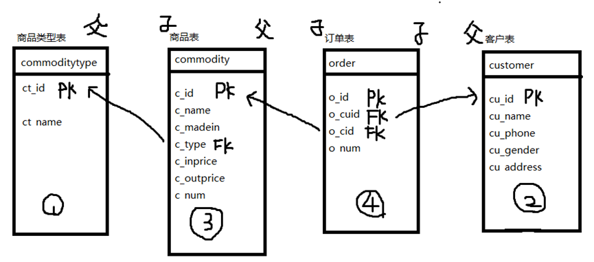 建表前必须确定外键关系,建表时先建父表,再建子表。