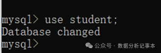 在创建数据表之前,还需要先指定这个数据库:use student; ,这个语句的意思是告诉系统,我们要使用student这个数据库,接下来的操作是这个数据库下进行的。
