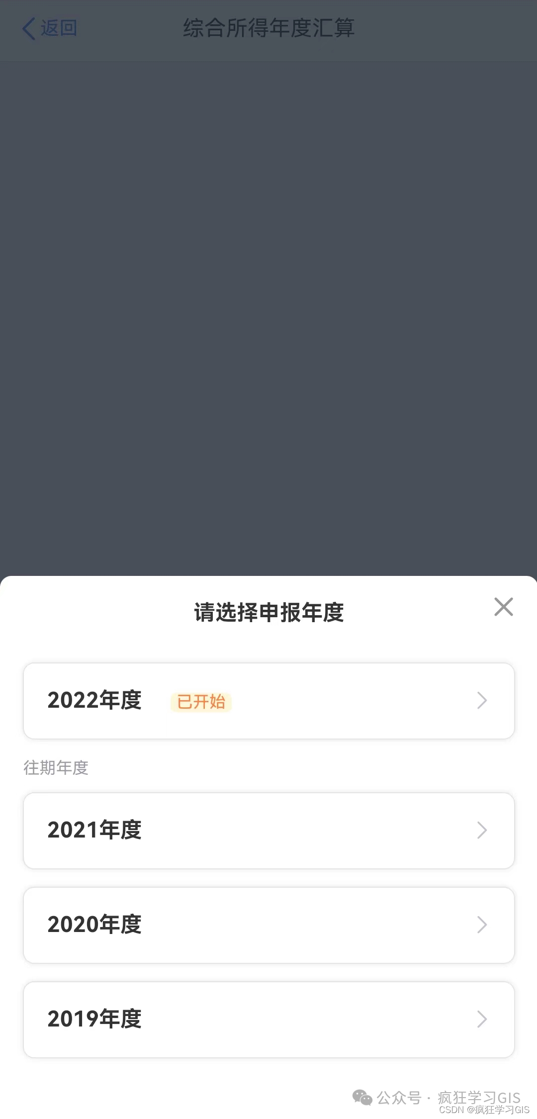随后,选择我们需要退税的年份(从下图开始,直到本文结束,都是在当初APP改版之前截取的图片;但是后续所有的图片变化都不大,不影响操作)。