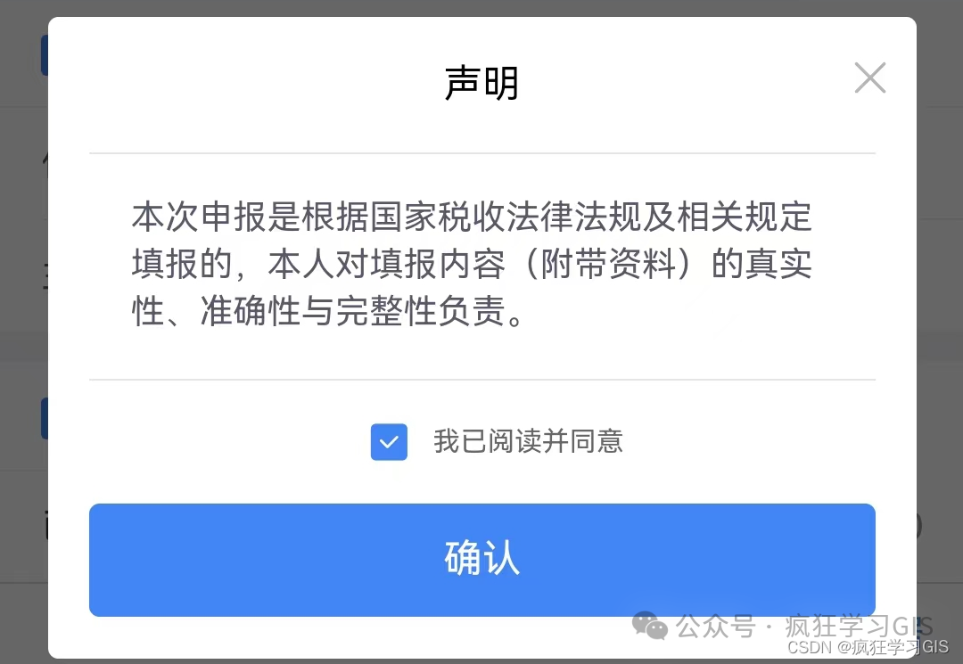 确认上述信息无误后,即可开始退税。首先,勾选如下图所示的声明。