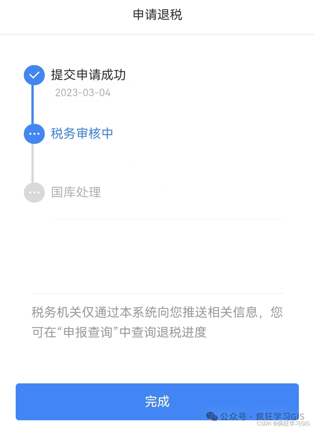 以上,即可完成退税的具体操作。我这里是以研究生的视角来介绍退税的具体流程的,但是无论大家的行业,其实整体流程都比较类似。对于研究生而言,大家大概率是会得到退税的结果;但如果大家是在单位上班,有较高的固定收入,通过上述流程后有时或许发现还需要补税。