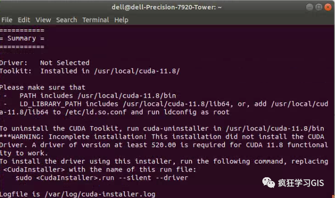 随后,大家在终端中,安装刚刚下载好的NVIDIA驱动程序即可。