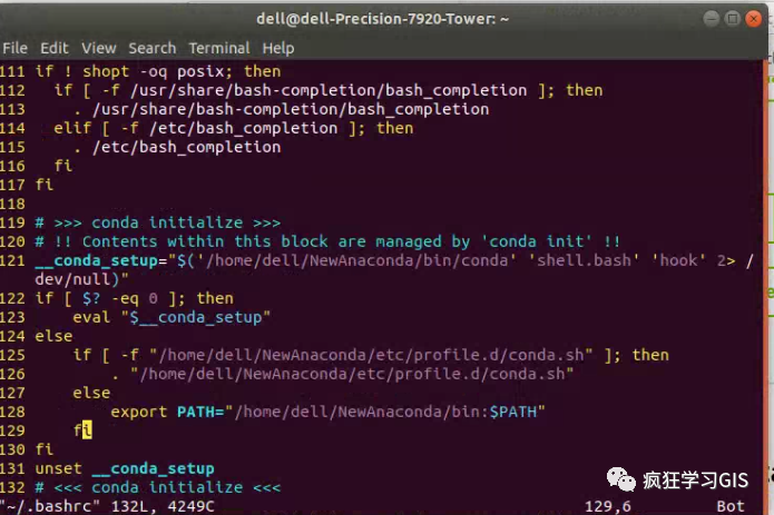 这一文件加以编辑。通过调整鼠标的位置,从而在bashrc