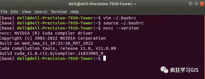 文件,使得我们刚刚修改的环境变量立即生效;第二句则是验证CUDA安装情况的代码。如果运行以上两句代码后,出现如下图所示的界面,则表明我们的CUDA配置与环境变量配置都已经完成。