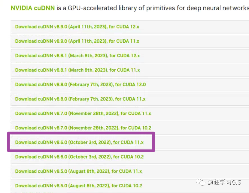 库版本与对应的CUDA、cuDNN版本匹配表格,明确我们需要下载哪一个版本的cuDNN。