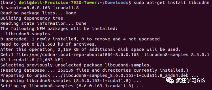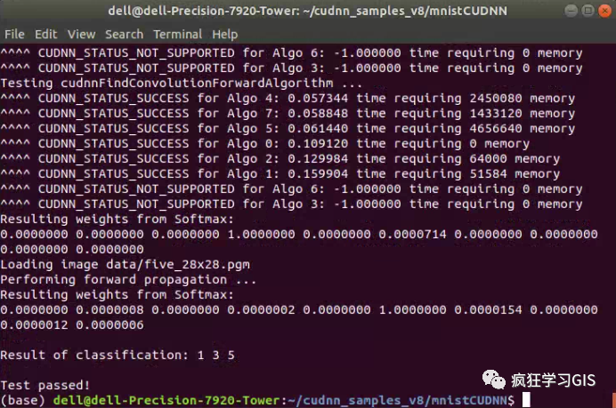 以上就是cuDNN的安装具体过程,接下来我们需要验证其是否安装正确。这一个验证过程稍微麻烦一些,但是其实流程也比较快。我们在终端中,依次逐行输入如下的代码即可。