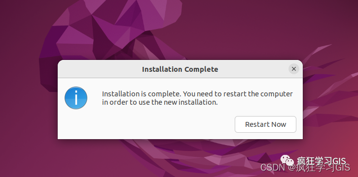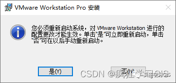 安装完毕后,虚拟机将提示需要重启;我们重启虚拟机即可。