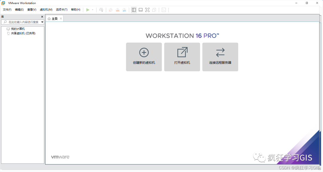 重启电脑后,打开VMware Workstation Pro虚拟机软件,将出现如下图所示的界面。