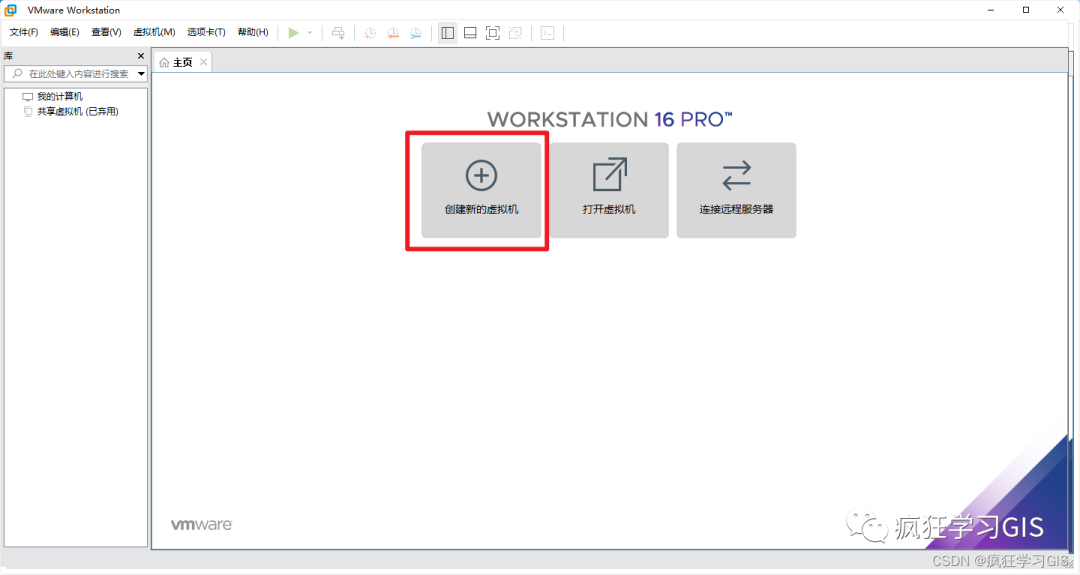 Linux Ubuntu操作系统的镜像文件下载同时,我们首先需要在VMware Workstation Pro虚拟机软件中配置新的虚拟机。如下图所示,我们选择“创建新的虚拟机”选项。