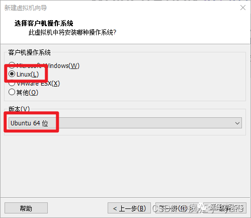 随后,在如下所示的界面中,选择我们创建虚拟机的操作系统(本文中就是Linux