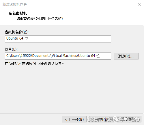 随后,配置这台虚拟机的名称与其存储位置;这里同样建议将“位置”选择为除系统盘以外的其他盘符。