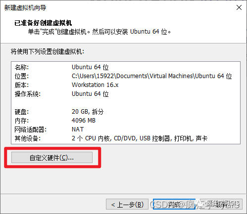 随后,在接下来的窗口中,我们可以选择“自定义硬件”,从而对虚拟机的更多属性进行配置。