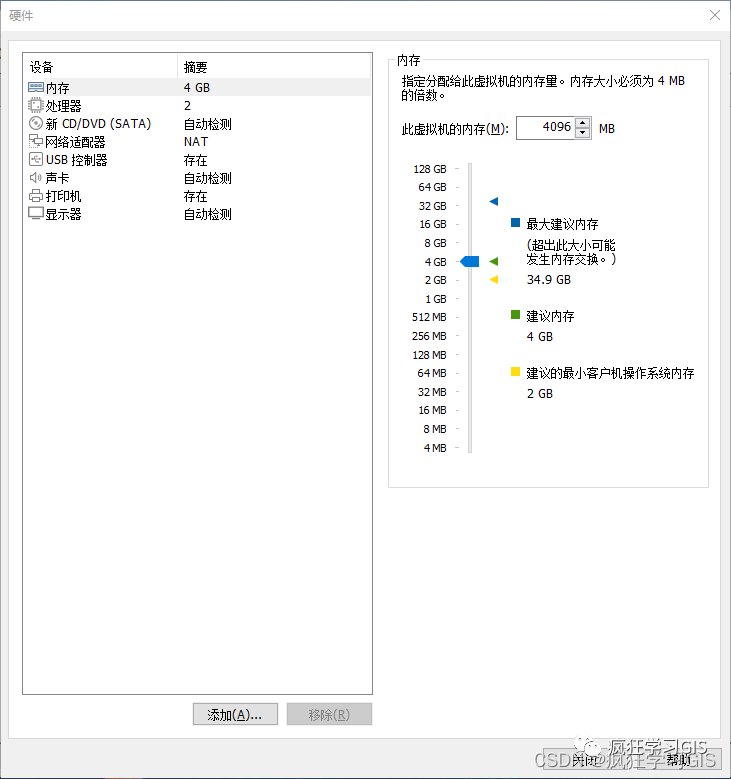其中,我们可以对内存进行修改;这里也建议大家使用默认的内存即可;后续使用虚拟机的过程中如果该项不合适,还可以再修改。