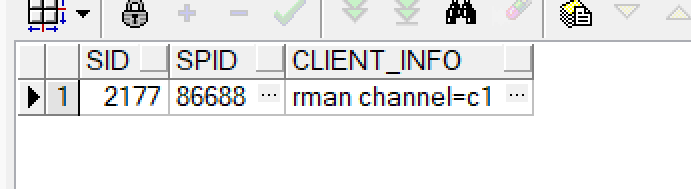 3.查找rman进程的会话信息,会列出rman进程和通道的会话
