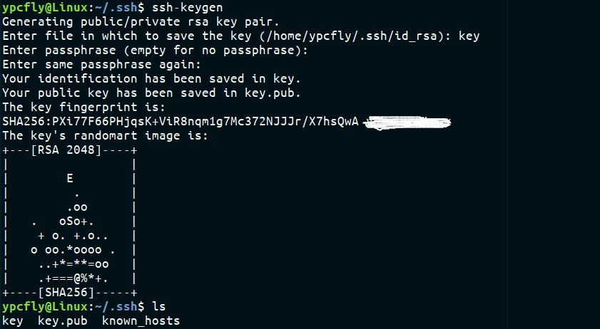 在本地Ubuntu终端输入: ssh-keygen 命令生成我们的密钥,根据控制台的提示输入你存放密钥的文件名称,后面的可以略过不输,直接enter跳过即可,然后就会看到终端成功生成密钥说明,见下图: