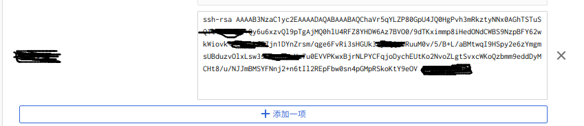 点击修改,就会看到我们的服务器的用户列表和对应的密钥了。点击下方的“添加一项”。然后打开本地的公钥文件,复制生成的公钥并粘贴到对应的位置,密钥最后的是你使用本地终端登录后显示的用户名,这个可以修改的,然后保存。