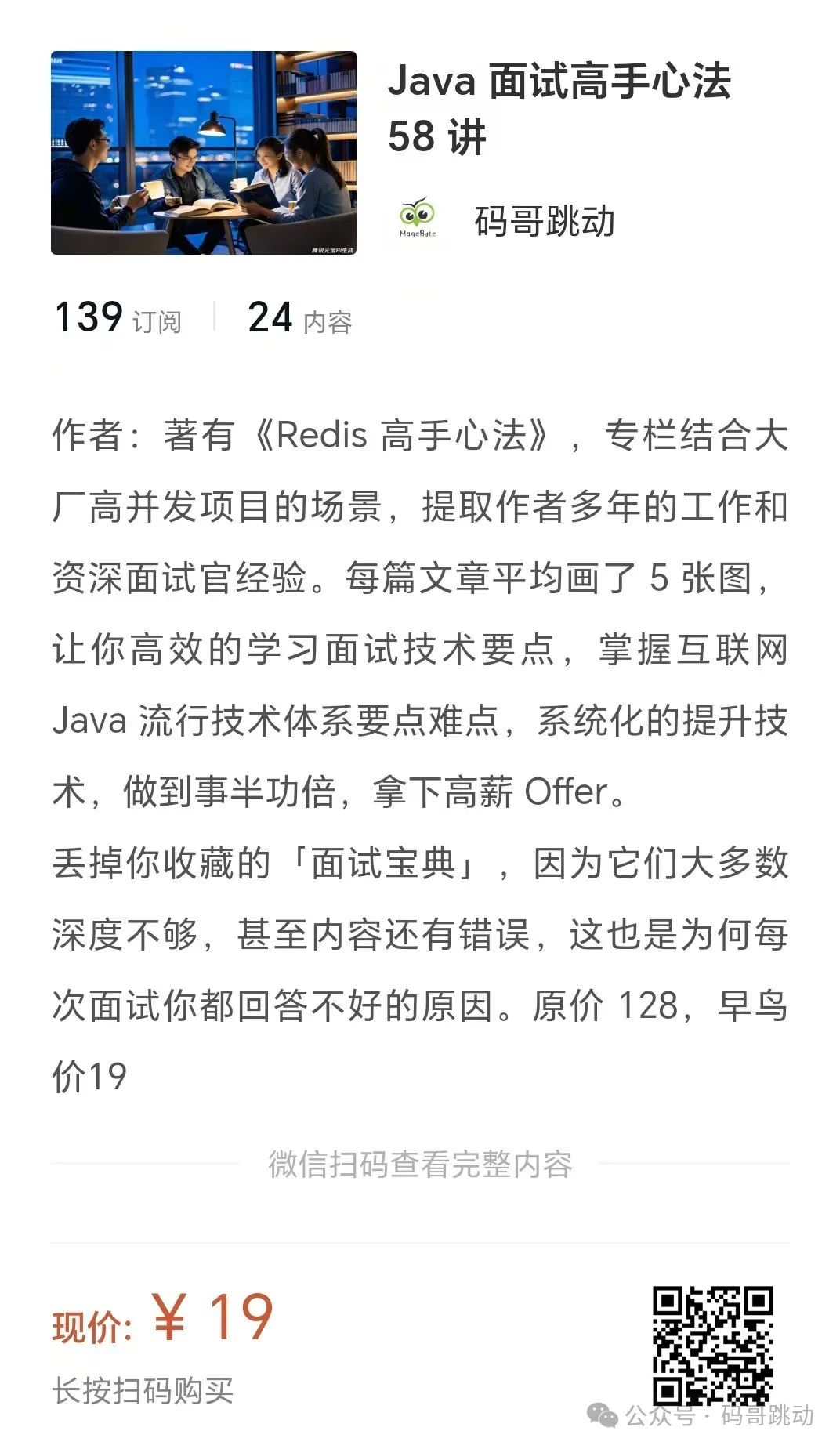 进入正文前,介绍下我的点击查看详细介绍 -> 《Java 面试高手心法 58 讲》专栏内容涵盖 Java 基础、Java 高级进阶、Redis、MySQL、消息中间件、微服务架构设计等面试必考点、面试高频点。