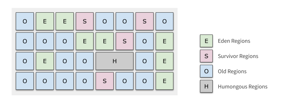 G1 将堆内存划分为多个等大小的 Region(默认 1MB-32MB),每个 Region 可以是 Eden、Survivor 或 Old 区,默认是将堆内存按照 2048 份均分。