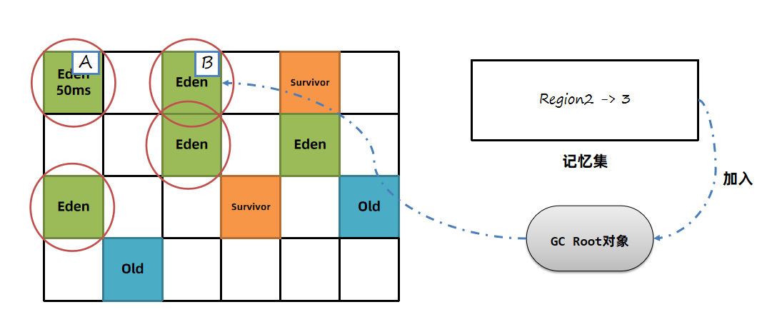 记忆集(RSet):每个 Region 维护一个 RSet,存储其他 Region 对其内部对象的引用。通过 RSet 快速定位跨 Region 引用,避免全堆扫描。