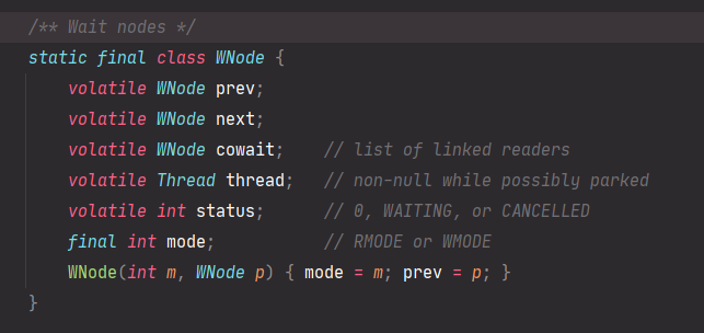 其内部定义了很多变量,这些变量的目的还是跟 ReentrantReadWriteLock