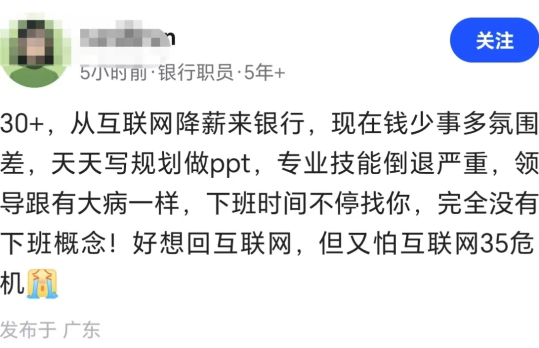 以前在互联网,虽然加班多,但至少还能在技术上刷刷存在感,钱也给的多。