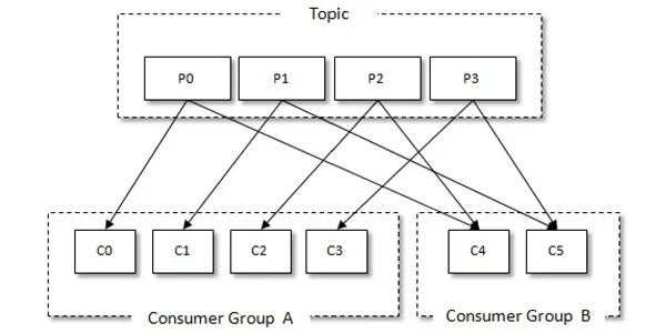 Kafka 有消费组的概念,每个消费者只能消费所分配到的分区的消息,每一个分区只能被一个消费组中的一个消费者所消费,所以同一个消费组中消费者的数量如果超过了分区的数量,将会出现有些消费者分配不到消费的分区。消费组与消费者关系如下图所示: