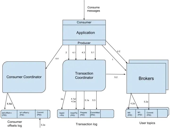 基本思路是这样的:引入tid(transaction id),和pid不同,这个id是应用程序提供的,用于标识事务,和producer是谁并没关系。就是任何producer都可以使用这个tid去做事务,这样进行到一半就死掉的事务,可以由另一个producer去恢复。