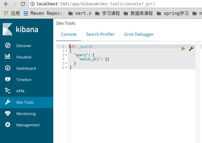 kibana的Dev Tools可以对ES进行操作的一个图形化界面,使用起来比使用命令行终端要更直观一点,也更方便一点。