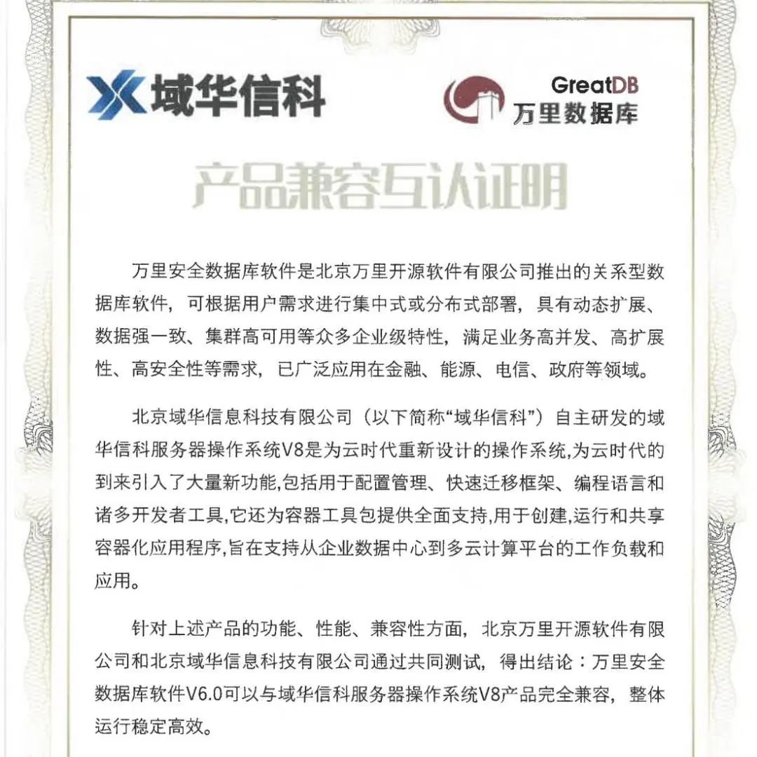 此次双月兼容认证成果,不仅是万里数据库技术实力与国产软硬件兼容度的体现,更是推动国产生态协同向前发展的重要举措。
