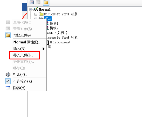 点击VB编辑器后,点击normal的模块,右键导入选择下载的word调用deepseek.bas进行导入,bas下载方法,后台发送deepseekvba获得,也可以手动复制上面的脚本