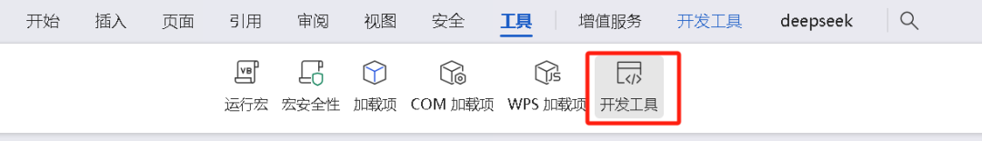 打开工具中的开发工具,配置vba脚本,如果无此菜单,在上图的自定义功能区中设置。