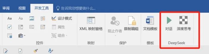 Private Const API_URL As String = "https://ark.cn-beijing.volces.com/api/v3/chat/completions"Private Const API_MODEL As String = "deepseek-v3-241226"Private Const API_MODEL_R As String = "deepseek-r1-250120"Private Const apikey As String = "填写你的火山引擎的apikey"Function CallDeepSeekAPI(api_key As String, inputText As String)Dim API As StringDim SendTxt As StringDim Http As ObjectDim status_code As IntegerDim response As StringMsgBox "开始调用Deepseek V3进行总结,耐心等待......"API = API_URLSendTxt = "{""model"": """ & API_MODEL & """, ""messages"": [{""role"":""system"", ""content"":""你是word文案助手""}, {""role"":""user"", ""content"":""" & inputText & """}], ""stream"": false}"Set Http = CreateObject("WinHttp.WinHttpRequest.5.1")With Http.Open "POST", API, False.setRequestHeader "Content-Type", "application/json".setRequestHeader "Authorization", "Bearer " & api_key.send SendTxtstatus_code = .Statusresponse = .responseTextEnd With' 弹出窗口显示 API 响应(调试用)' MsgBox "API Response: " & response, vbInformation, "Debug Info"If status_code = 200 ThenCallDeepSeekAPI = responseElseCallDeepSeekAPI = "Error: " & status_code & " - " & responseEnd IfSet Http = NothingEnd FunctionFunction CallDeepSeekRAPI(api_key As String, inputText As String)Dim API As StringDim SendTxt As StringDim Http As ObjectDim status_code As IntegerDim response As StringMsgBox "开始调用Deepseek R1进行总结,耐心等待......"API = API_URLSendTxt = "{""model"": """ & API_MODEL_R & """, ""messages"": [{""role"":""system"", ""content"":""你是word文案助手""}, {""role"":""user"", ""content"":""" & inputText & """}], ""stream"": false}"Set Http = CreateObject("WinHttp.WinHttpRequest.5.1")With Http.Open "POST", API, False.setRequestHeader "Content-Type", "application/json".setRequestHeader "Authorization", "Bearer " & api_key.send SendTxtstatus_code = .Statusresponse = .responseTextEnd With' 弹出窗口显示 API 响应(调试用)' MsgBox "API Response: " & response, vbInformation, "Debug Info"If status_code = 200 ThenCallDeepSeekRAPI = responseElseCallDeepSeekRAPI = "Error: " & status_code & " - " & responseEnd IfSet Http = NothingEnd FunctionSub DeepSeekV3()Dim api_key As StringDim inputText As StringDim response As StringDim regex As ObjectDim matches As ObjectDim originalSelection As Objectapi_key = apikeyIf api_key = "" ThenMsgBox "Please enter the API key."Exit SubElseIf Selection.Type <> wdSelectionNormal ThenMsgBox "请选择文本."Exit SubEnd If' 保存原始选中的文本Set originalSelection = Selection.Range.DuplicateinputText = Replace(Replace(Replace(Replace(Replace(Selection.text, "\", "\\"), vbCrLf, ""), vbCr, ""), vbLf, ""), Chr(34), "\""")response = CallDeepSeekAPI(api_key, inputText)If Left(response, 5) <> "Error" ThenSet regex = CreateObject("VBScript.RegExp")With regex.Global = True.MultiLine = True.IgnoreCase = False.Pattern = """content"":""(.*?)"""End WithSet matches = regex.Execute(response)If matches.Count > 0 Thenresponse = matches(0).SubMatches(0)response = Replace(Replace(response, """", Chr(34)), """", Chr(34))response = Replace(response, "\n\n", "\n")response = Replace(response, "\n", vbCrLf)response = Replace(response, "*", "")response = Replace(response, "#", "")' 取消选中原始文本Selection.Collapse Direction:=wdCollapseEnd' 将内容插入到选中文字的下一行Selection.TypeParagraph ' 插入新行Selection.TypeText text:=response' 将光标移回原来选中文本的末尾originalSelection.SelectElseMsgBox "Failed to parse API response.", vbExclamationEnd IfElseMsgBox response, vbCriticalEnd IfEnd SubSub DeepSeekR()Dim api_key As StringDim inputText As StringDim response As StringDim regex As ObjectDim matches As ObjectDim originalSelection As Objectapi_key = apikeyIf api_key = "" ThenMsgBox "Please enter the API key."Exit SubElseIf Selection.Type <> wdSelectionNormal ThenMsgBox "请选择文本."Exit SubEnd If' 保存原始选中的文本Set originalSelection = Selection.Range.DuplicateinputText = Replace(Replace(Replace(Replace(Replace(Selection.text, "\", "\\"), vbCrLf, ""), vbCr, ""), vbLf, ""), Chr(34), "\""")response = CallDeepSeekRAPI(api_key, inputText)If Left(response, 5) <> "Error" ThenSet regex = CreateObject("VBScript.RegExp")With regex.Global = True.MultiLine = True.IgnoreCase = False.Pattern = """content"":""(.*?)"""End WithSet matches = regex.Execute(response)If matches.Count > 0 Thenresponse = matches(0).SubMatches(0)response = Replace(Replace(response, """", Chr(34)), """", Chr(34))response = Replace(response, "\n\n", "\n")response = Replace(response, "\n", vbCrLf)response = Replace(response, "*", "")response = Replace(response, "#", "")' 取消选中原始文本Selection.Collapse Direction:=wdCollapseEnd' 将内容插入到选中文字的下一行Selection.TypeParagraph ' 插入新行Selection.TypeText text:=response' 将光标移回原来选中文本的末尾originalSelection.SelectElseMsgBox "Failed to parse API response.", vbExclamationEnd IfElseMsgBox response, vbCriticalEnd IfEnd Sub