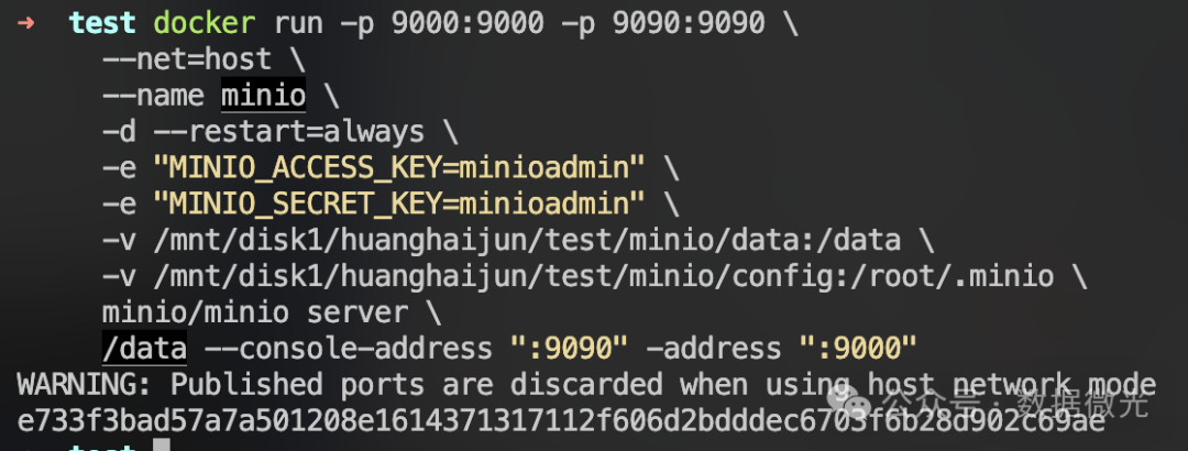 minio/minio server /data --console-address ":9090" -address ":9000"