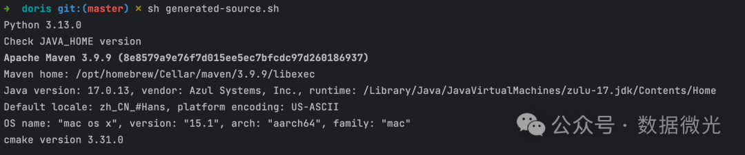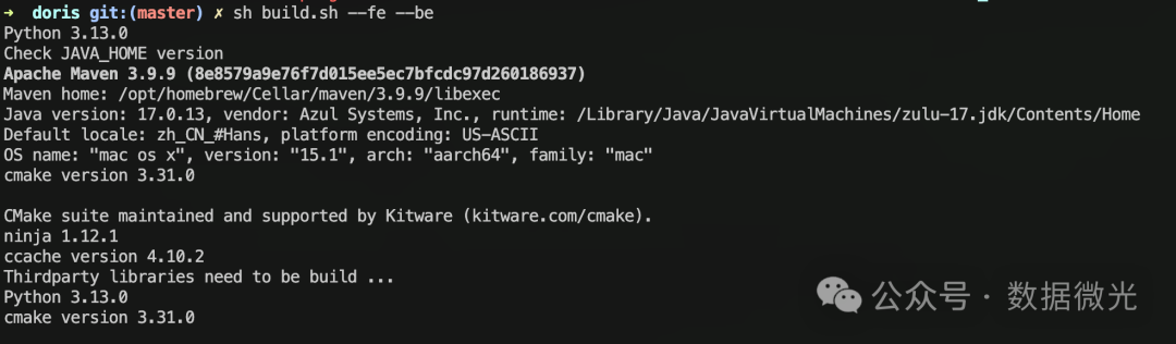 电脑配置:MacBook Pro(芯片:Apple M1,macOS: 15.1) JDK17 Doris Master分支,适用branch-2.1分支