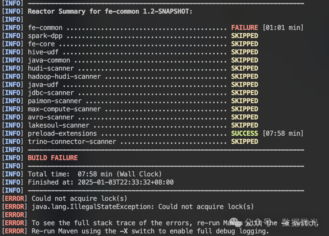 Q1 编译过程中可能会遇到锁冲突的报错:Could not acquire lock(s)