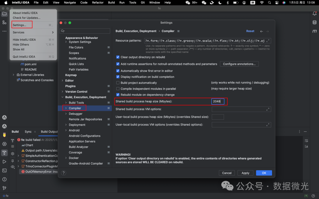 Q3 IDEA启动FE报错:java: OutOfMemoryError: insufficient memory