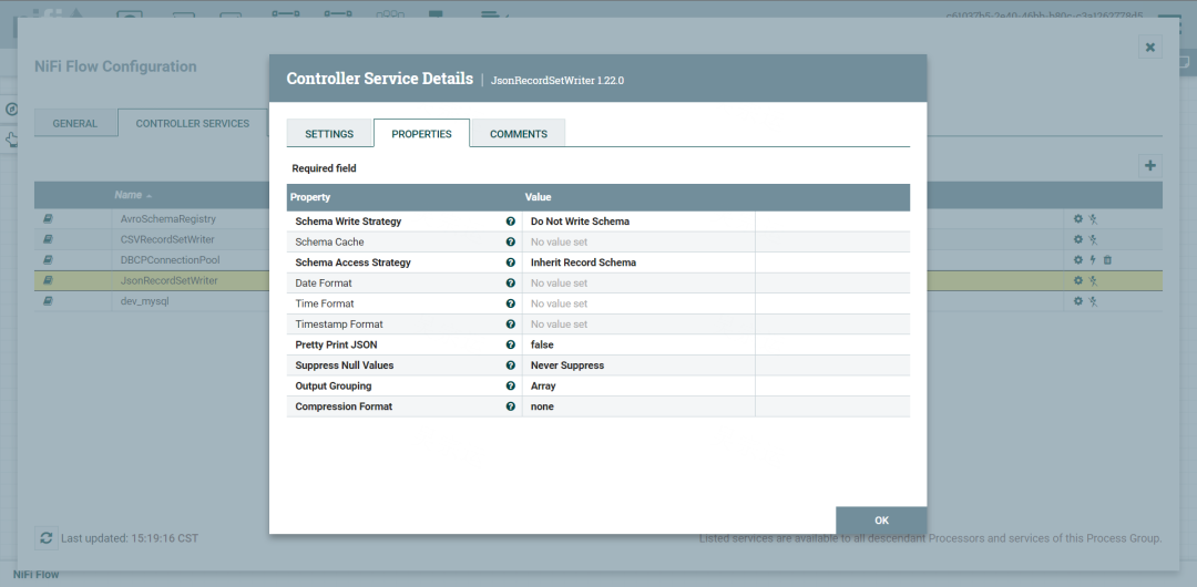 选择数据源,及Record Writer,我们选择JsonRecordSetWriter