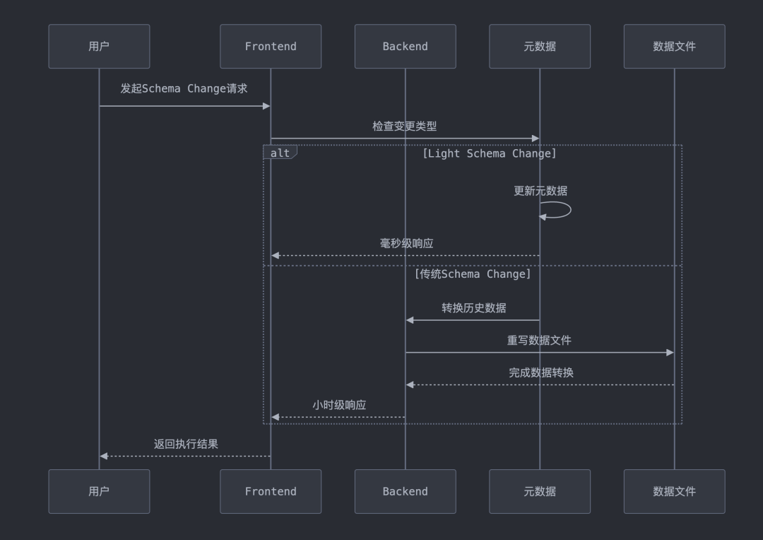 而Light Schema Change的出现彻底改变了这一切。它通过只修改元数据而不重写数据文件的方式,把表结构变更的响应时间从"小时级"降至"毫秒级"。
