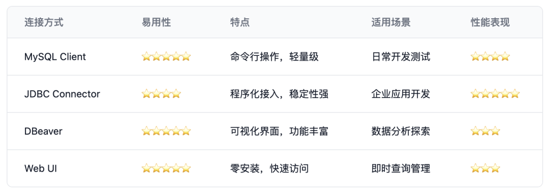 深夜,办公室里小王正在为数据库连接发愁。"为什么我的查询总是超时?"他不停地敲打键盘。作为一名资深数据工程师,我走到他身边,看到他正在用MySQL命令行连接Doris数据库。